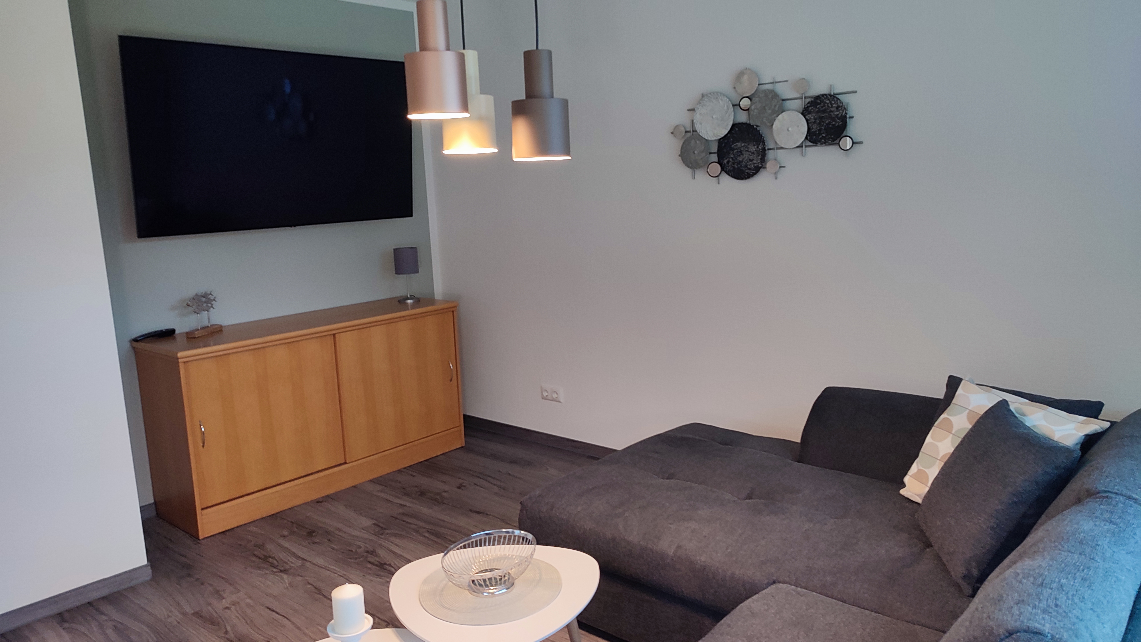 Einen schönen Gartenausblick genießen Sie durch das große Panoramafenster im Wohnzimmer. Gut gebettet sind Sie im Schlafzimmer mit Doppelbett. Das Badezimmer ist mit einer Dusch-Anlage, WC und Waschtisch ausgestattet. In der separaten Küche lassen sich kleine Köstlichkeiten zu bereiten. Dafür stehen Ihnen ein Ceran-2-Plattenkochfeld, ein kleiner Grillofen, Kühlschrank und Mikrowelle zur Verfügung. Zusätzlich ist die Küche mit Geschirrspüler, Kaffeemaschine, Wasserkocher Geschirr und Kochgeschirr ausgestattet.